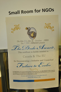 La CBD Alliance, una red mundial de organizaciones de la sociedad civil que participan en el CDB, nominó a la Unión Europea y Canadá, como "los Dodos de la semana", principalmente debido a su actitud obstruccionista en el acceso y participación en los