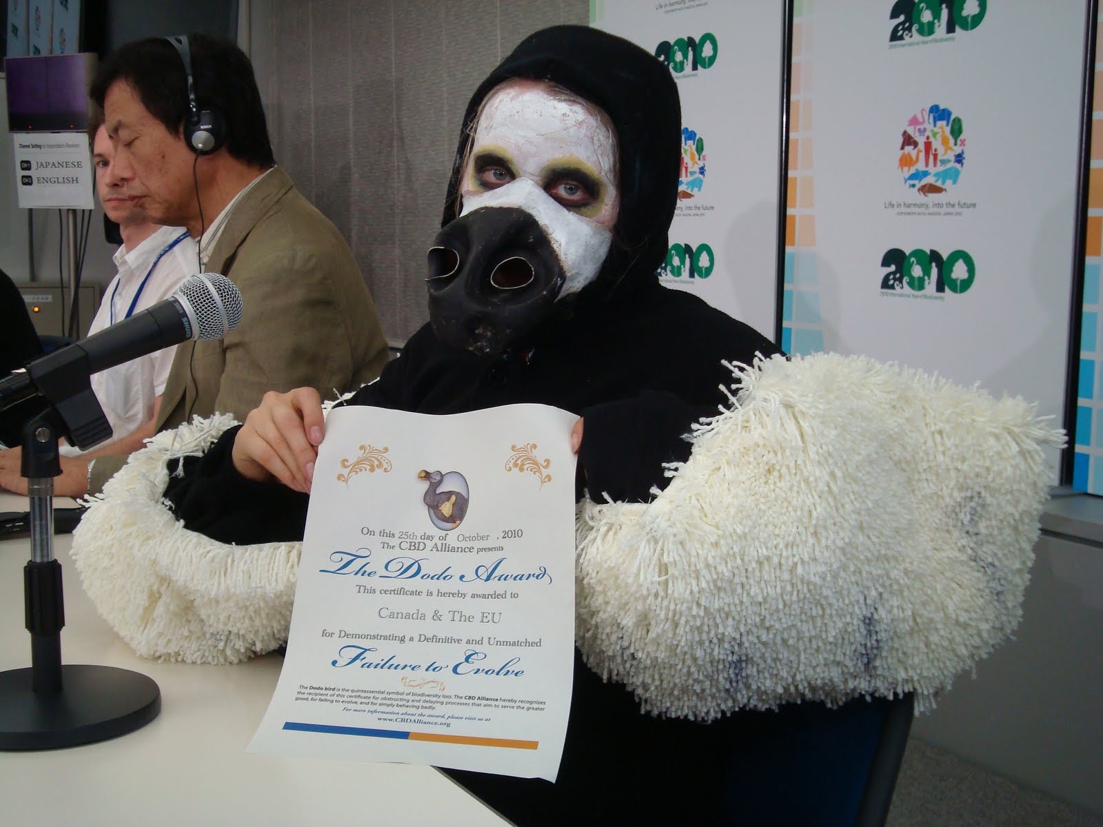 La CBD Alliance, una red mundial de organizaciones de la sociedad civil que participan en el CDB, nominó a la Unión Europea y Canadá, como "los Dodos de la semana", principalmente debido a su actitud obstruccionista en el acceso y participación en los